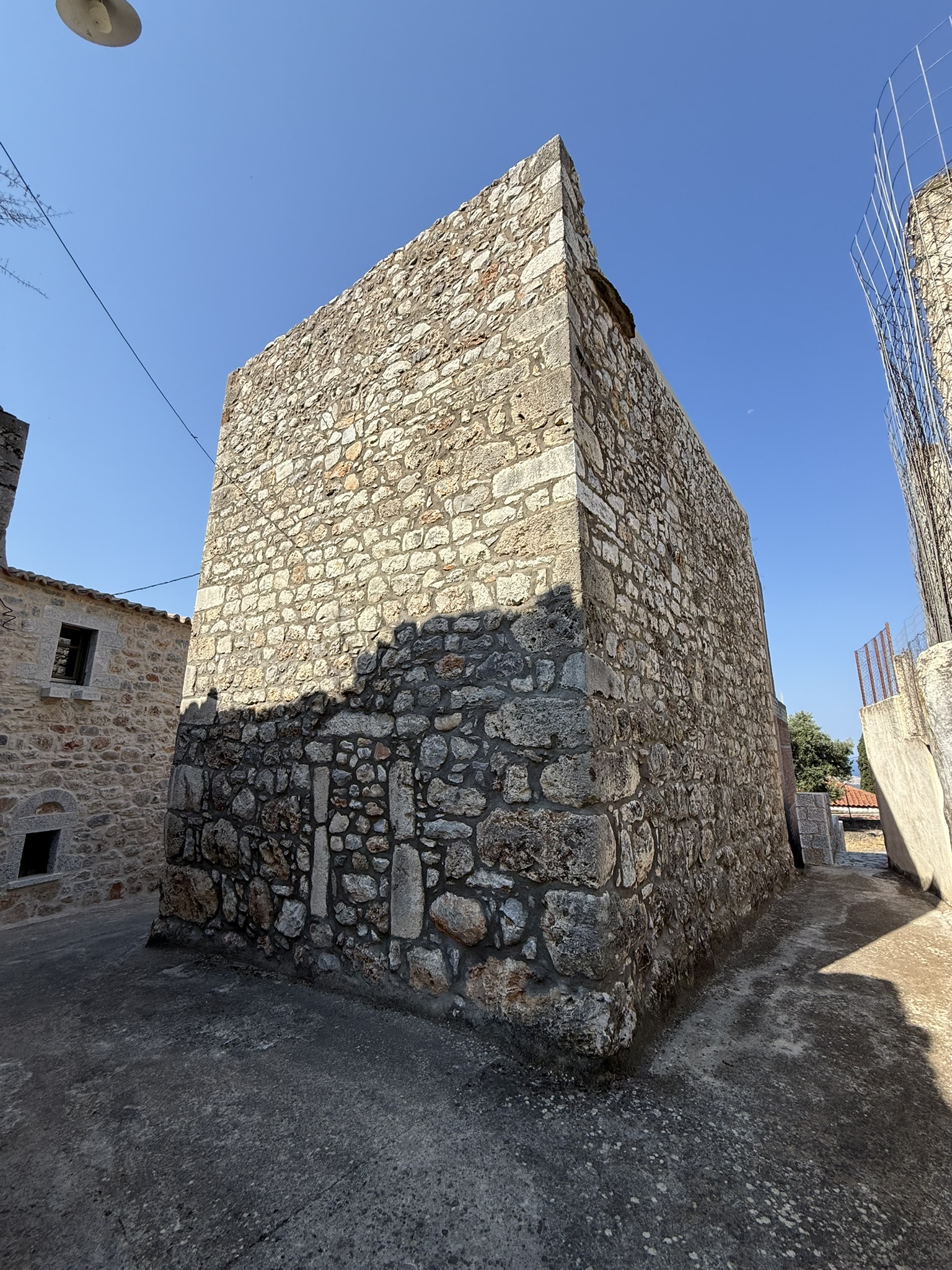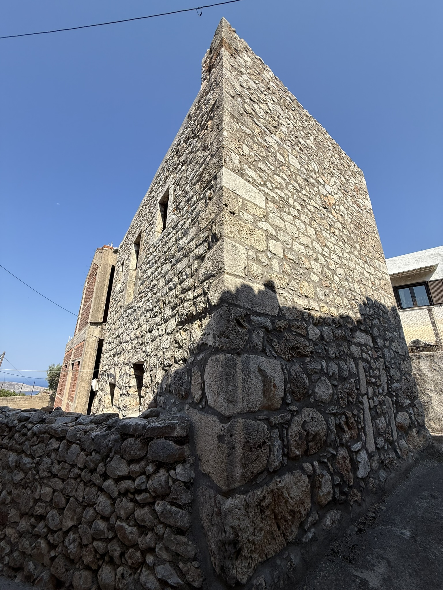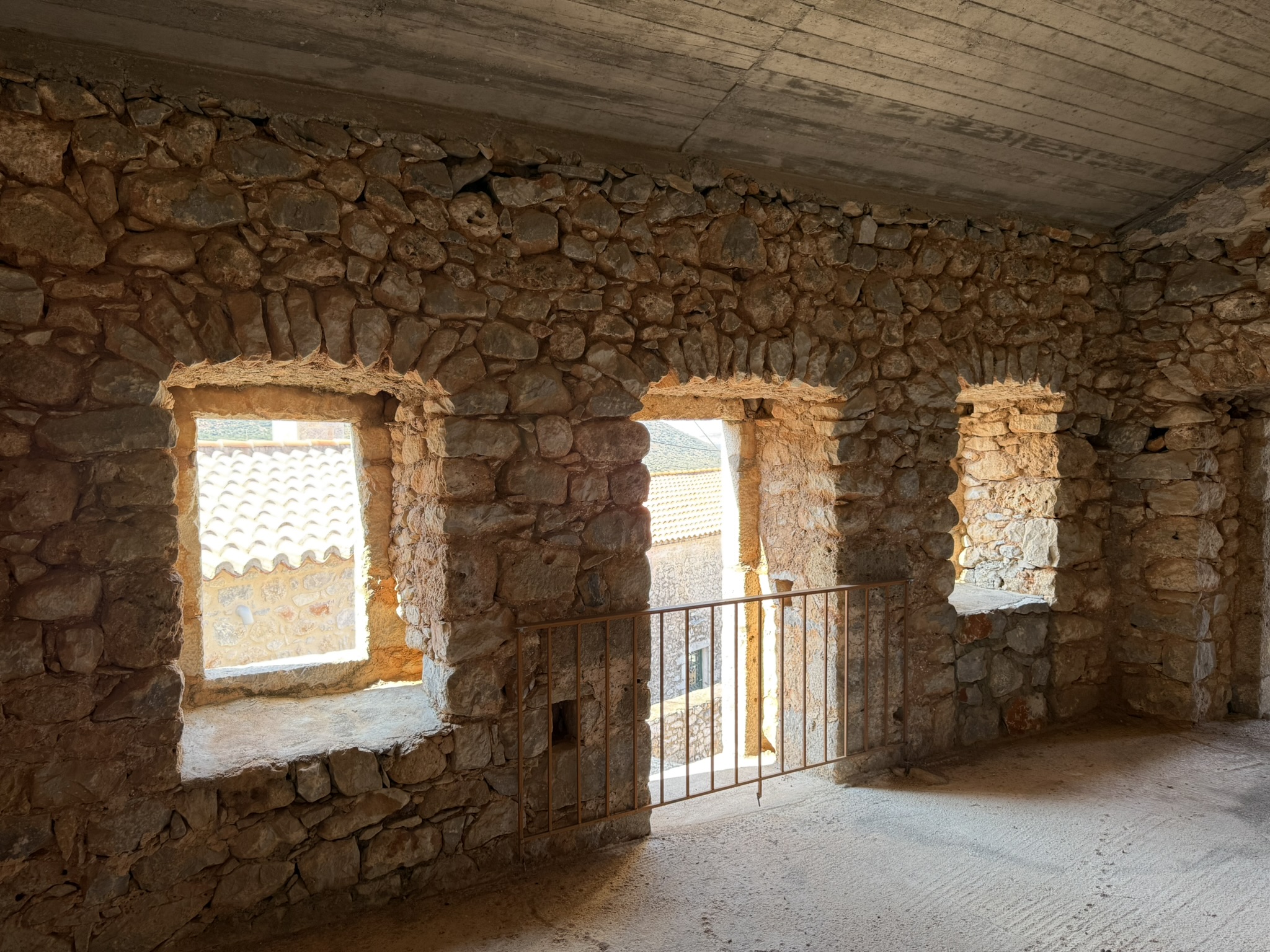 Αυτή η πανέμορφη μονοκατοικία – μεζονέτα, χαρακτηριστικό δείγμα των πέτρινων παραδοσιακών κτισμάτων της περιοχής της Μάνης, συνδυάζει το παραδοσιακό στοιχείο με το νέο, καθώς τμήμα αυτής είναι εξ ολοκλήρου κατασκευασμένο από παραδοσιακά πέτρινα τοιχία και το υπόλοιπο τμήμα όπως φαίνεται και στις φωτογραφίες, έχει κατασκευαστεί από οπλισμένο σκυρόδεμα και τούβλα και από τα σχέδια της οικοδομικής άδειας προβλέπεται τα τοιχία και αυτού του τμήματος να επενδυθούν με παραδοσιακή πέτρα.