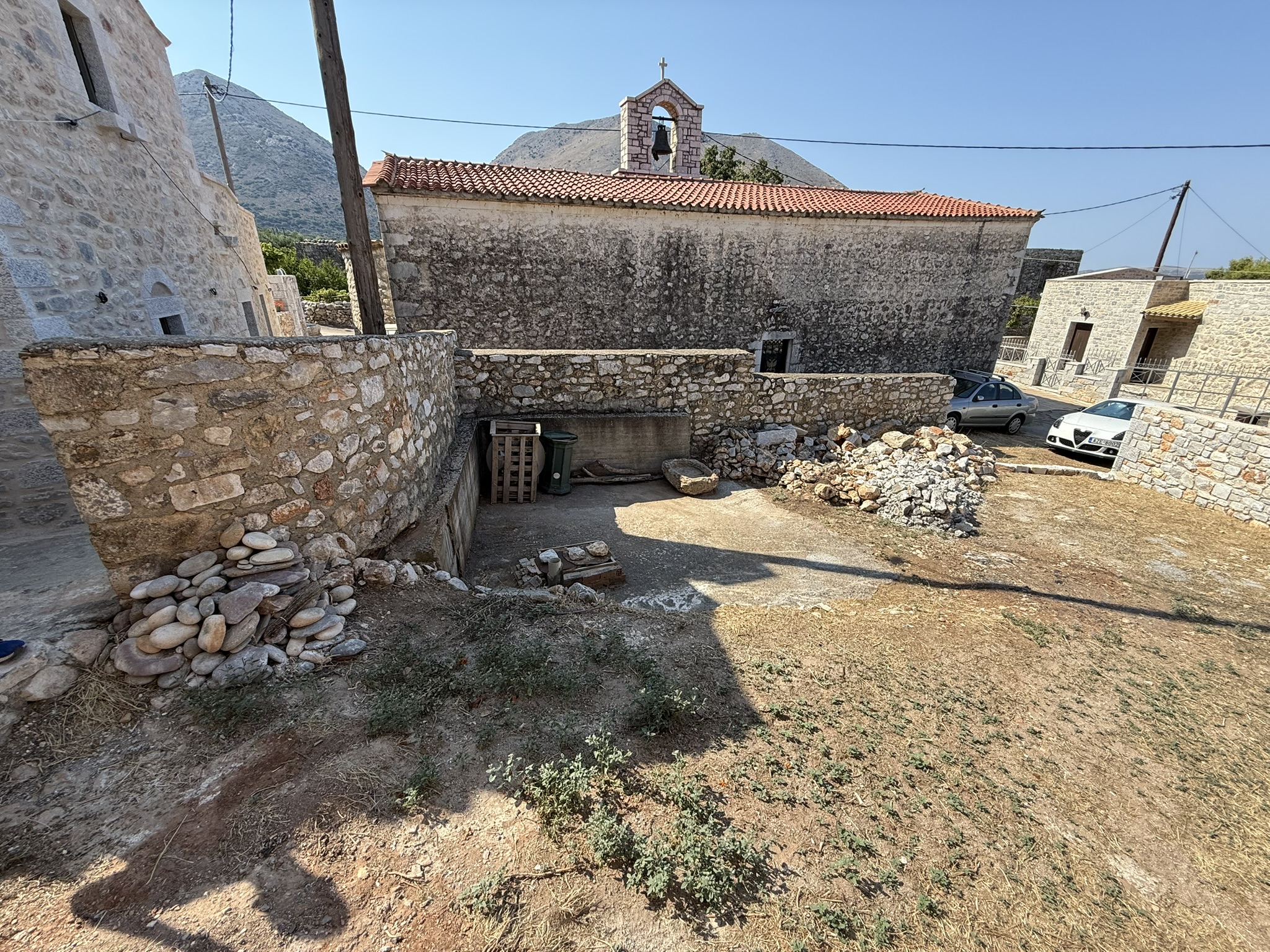 Όσον αφορά το οικόπεδο επί του οποίου βρίσκεται η κατοικία, το εμβαδό αυτού ανέρχεται σε 252 τετραγωνικά μέτρα και έχει αρκετό χώρο για στάθμευση αυτοκινήτου αλλά και για κήπο και οριοθετείται από πέτρινους παραδοσιακούς μανδρότοιχους.