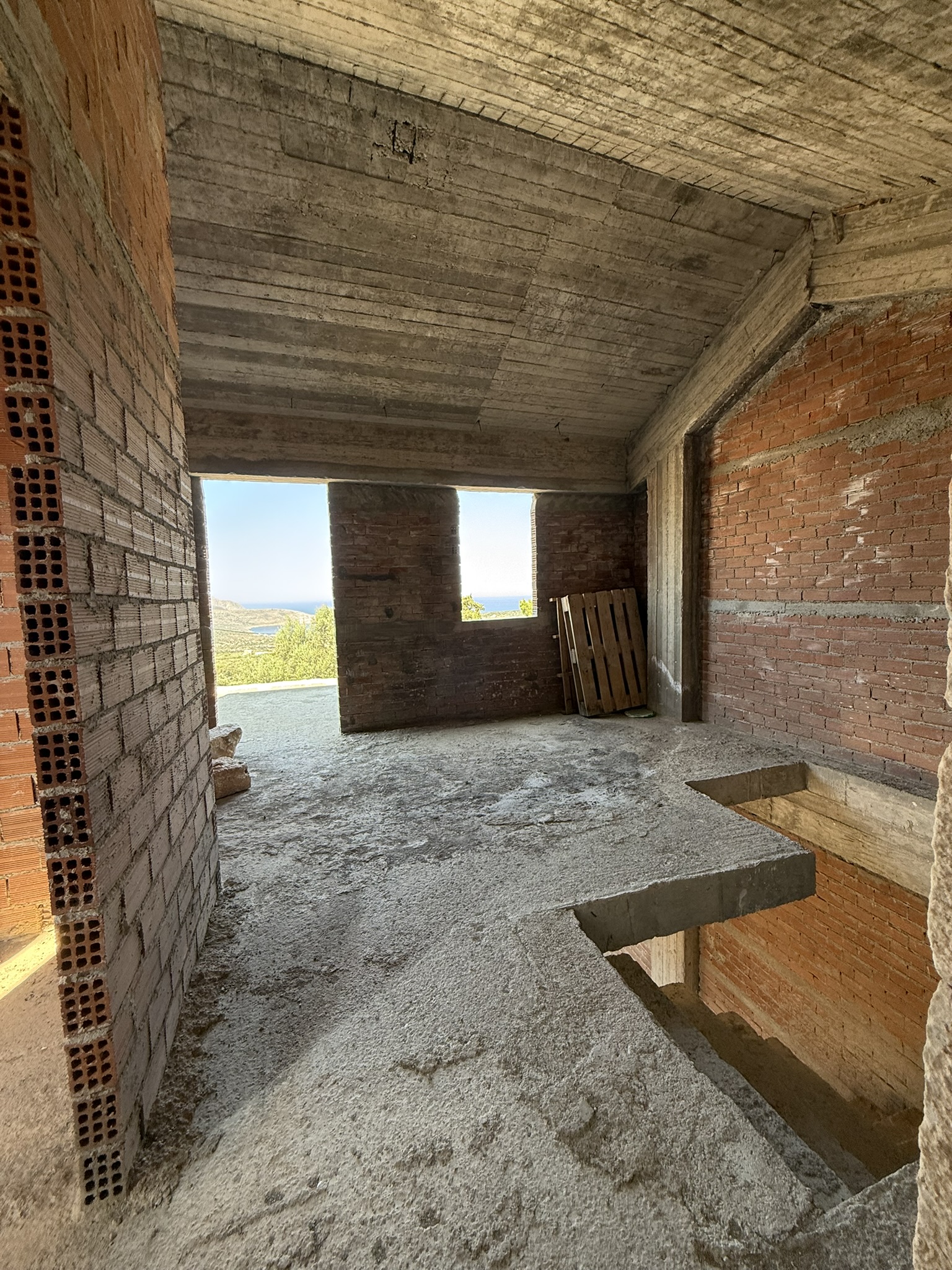 1) Πρώτος όροφος το εμβαδό του οποίου είναι 66,19 τετραγωνικά μέτρα, επί του οποίου σύμφωνα με τα σχέδια της οικοδομικής άδειας προβλέπεται να έχει μία κουζίνα, ένα λουτρό και ένα υπνοδωμάτιο. Επίσης στη στάθμη του πρώτου ορόφου υπάρχει και μεγάλη βεράντα επιφάνειας 16 τετραγωνικών μέτρων, με εξαιρετική θέα προς τη θάλασσα αλλά και προς τα γύρω βουνά.